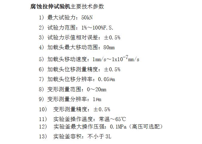 腐蝕拉伸試驗機主要技術(shù)參數(shù):
