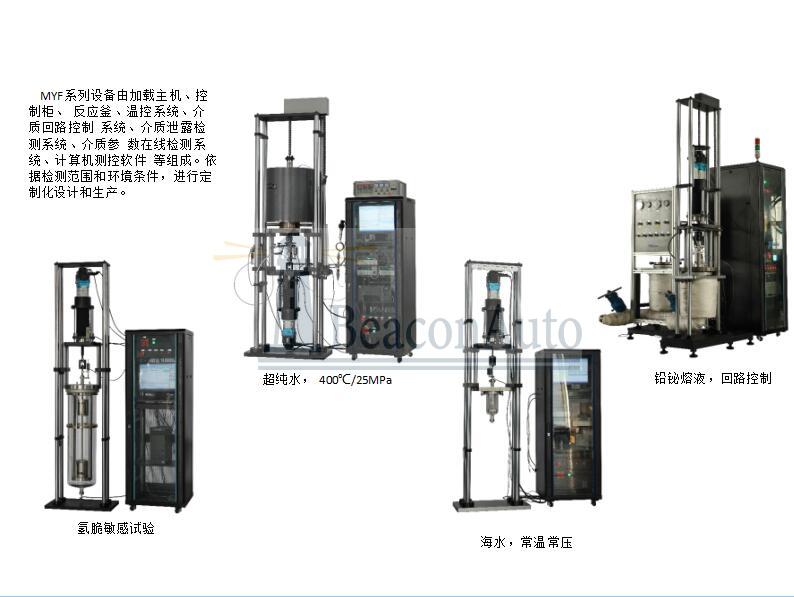 本試驗系統(tǒng)由拉伸加載系統(tǒng)、腐蝕環(huán)境容器(實驗釜可配置不同溫度范圍)、試驗夾具、 測控系統(tǒng)、試驗軟件、計算機(jī)、控制機(jī)柜等部分組成。