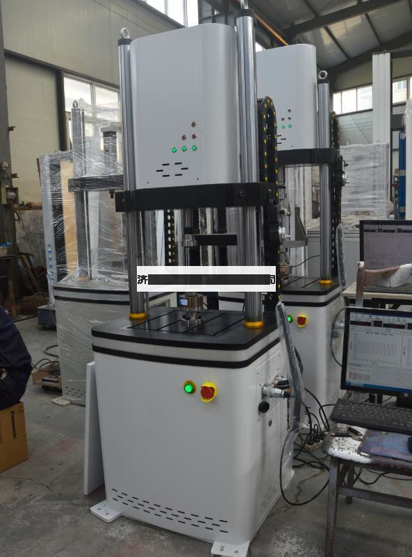 主機(jī)為雙立柱框架式結(jié)構(gòu), 伺服直線作動(dòng)器下置于主機(jī)框架上部。夾頭分別安裝在橫梁和作動(dòng)器活塞桿頂端。主機(jī)橫梁調(diào)整采用電動(dòng)絲杠升降,傳動(dòng)單元隱藏在橫梁內(nèi)部,外觀整潔,主機(jī)下部工作臺(tái)為分體式,不需要刻意拆掉,整機(jī)防止在客戶指定的臺(tái)面上。手動(dòng)夾緊、彈性松開式結(jié)構(gòu),保證試驗(yàn)過程中橫梁穩(wěn)固可靠,同時(shí)保證在非試驗(yàn)狀態(tài)時(shí)橫梁保持鎖止不動(dòng)。立柱外表面采用電鍍硬鉻處理,可有效增加立柱抗磨損能力,提高防腐蝕能力,同時(shí)增加主機(jī)外形的美觀程度。試驗(yàn)機(jī)主機(jī)具有結(jié)構(gòu)緊湊、橫梁升降自如、機(jī)架剛度高、試件夾持可靠、對(duì)中性好、裝夾方便等特點(diǎn),并可配備各種夾具和環(huán)境試驗(yàn)裝置以擴(kuò)展試驗(yàn)功能。