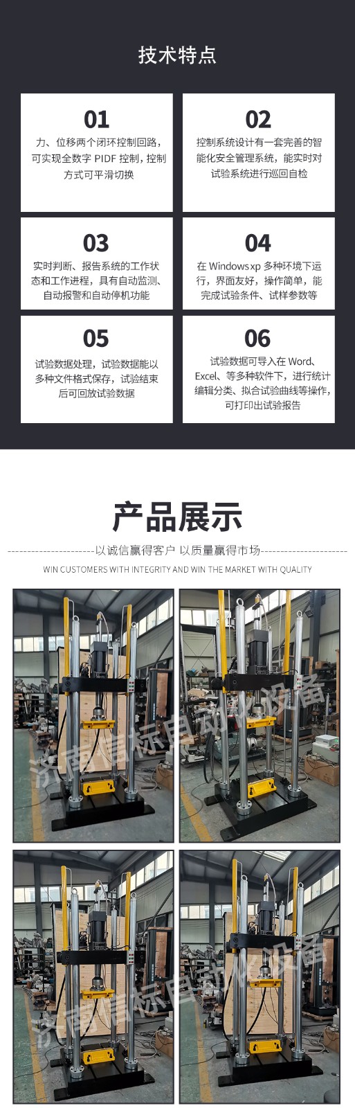 6,框架形式:雙立柱;立柱距離:≥600mm;上下夾頭間距:50~600 mm;
