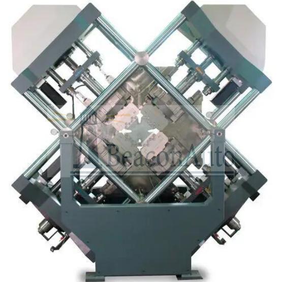 結(jié)晶聚合物十字形試樣雙向拉伸試驗(yàn)機(jī)實(shí)用新型屬于試驗(yàn)設(shè)備技術(shù)領(lǐng)域,特別涉及一種十字雙拉試驗(yàn)機(jī)。傳統(tǒng)的材料試驗(yàn)機(jī)只能測(cè)試單方向的拉伸強(qiáng)度,但是材料的應(yīng)用場(chǎng)景更多的是多向拉伸狀態(tài),因此以前的測(cè)試方法是分別做兩個(gè)方向的拉伸載荷測(cè)試然后再綜合計(jì)算數(shù)據(jù)。但是材料在實(shí)際多向形變的過(guò)程中各個(gè)方向的應(yīng)力是相互影響的:x向施加了應(yīng)力后,可能會(huì)讓y向的失效應(yīng)力比單獨(dú)施加y向的失效稍大,最多的應(yīng)用在汽車高強(qiáng)鋼板、鋁合金板、碳纖維面板等。