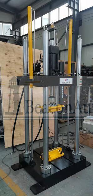 1、主機:主機為雙立柱框架式結(jié)構(gòu), 100kN伺服直線作動器上置于主機框架內(nèi)部。強迫液壓夾頭分別安裝在橫梁和作動器活塞桿頂端。主機橫梁調(diào)整采用液壓升降、液壓夾緊、彈性松開式結(jié)構(gòu),保證試驗過程中橫梁穩(wěn)固可靠,同時保證在非試驗狀態(tài)時橫梁保持鎖止不動。立柱外表面采用電鍍硬鉻處理,可有效增加立柱抗磨損能力,提高防腐蝕能力,同時增加主機外形的美觀程度。