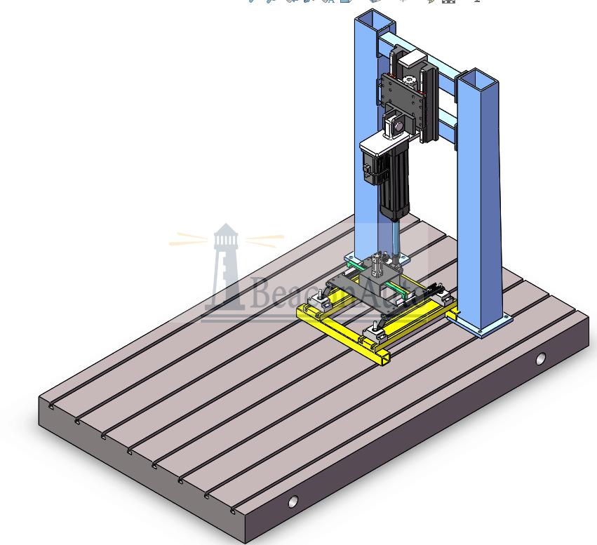 2. 水平橫梁可以上下移動,用于調(diào)整伺服作動器的位置,方便實驗位置的改變,實現(xiàn)水平和垂直加載,絲杠調(diào)整氣動鎖緊,可以使作動器傾斜一定角度,滿足調(diào)角器的靜態(tài)剛度和耐久試驗。
