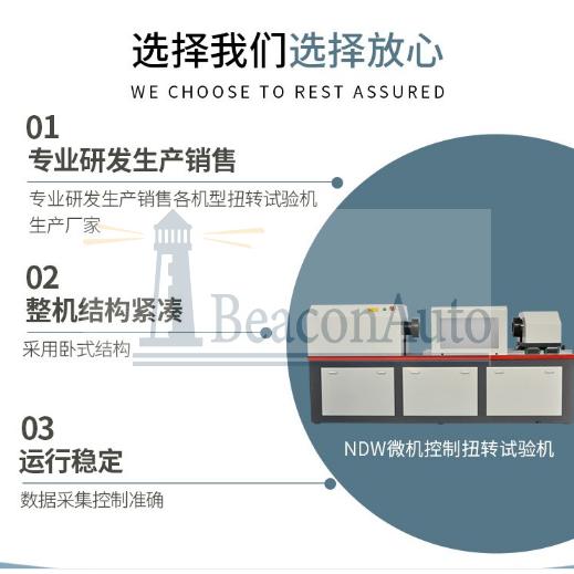產品用途:NDW-3000Y厭氧膠黏劑剪切強度測定儀主要用于扭轉金屬材料、非金屬材料的檢測。被測試試樣安裝在可調整空間的夾具之間,可適應不同的被測試試樣扭轉力學性能的試驗。試驗機采用計算機控制操作,可進行定角度扭矩試驗;顯示器顯示被測試零件的角度-扭矩曲線;實時顯示角度、扭矩、扭矩峰值保持、試驗機工作狀態(tài)。