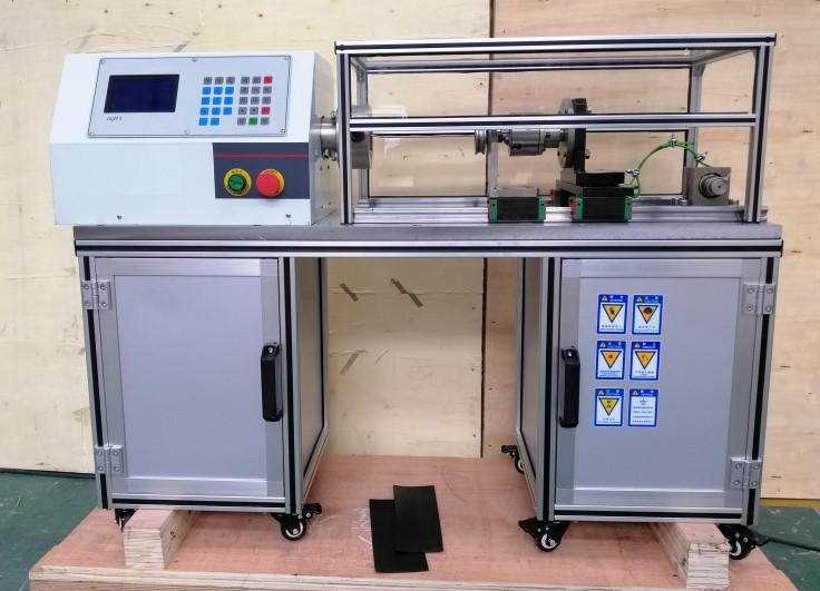 1、機(jī)械結(jié)構(gòu):該機(jī)型采用高性能交流電機(jī)作為動(dòng)力輸出,配以高精度減速電機(jī),從而使動(dòng)力能平穩(wěn)輸出。電機(jī)的驅(qū)動(dòng)采用高可靠、高穩(wěn)定變頻器,提高機(jī)器運(yùn)行的平順性,降低功耗。一側(cè)夾頭固定在電機(jī)輸出軸,另一側(cè)夾頭固定在可移動(dòng)軸承座。移動(dòng)座采用直線軸承,摩擦阻力小,保證了軸向移動(dòng)的平直度。軸向拉緊力采用砝碼施加,通過(guò)10:1的L型杠桿,將作用力施加在線材上。